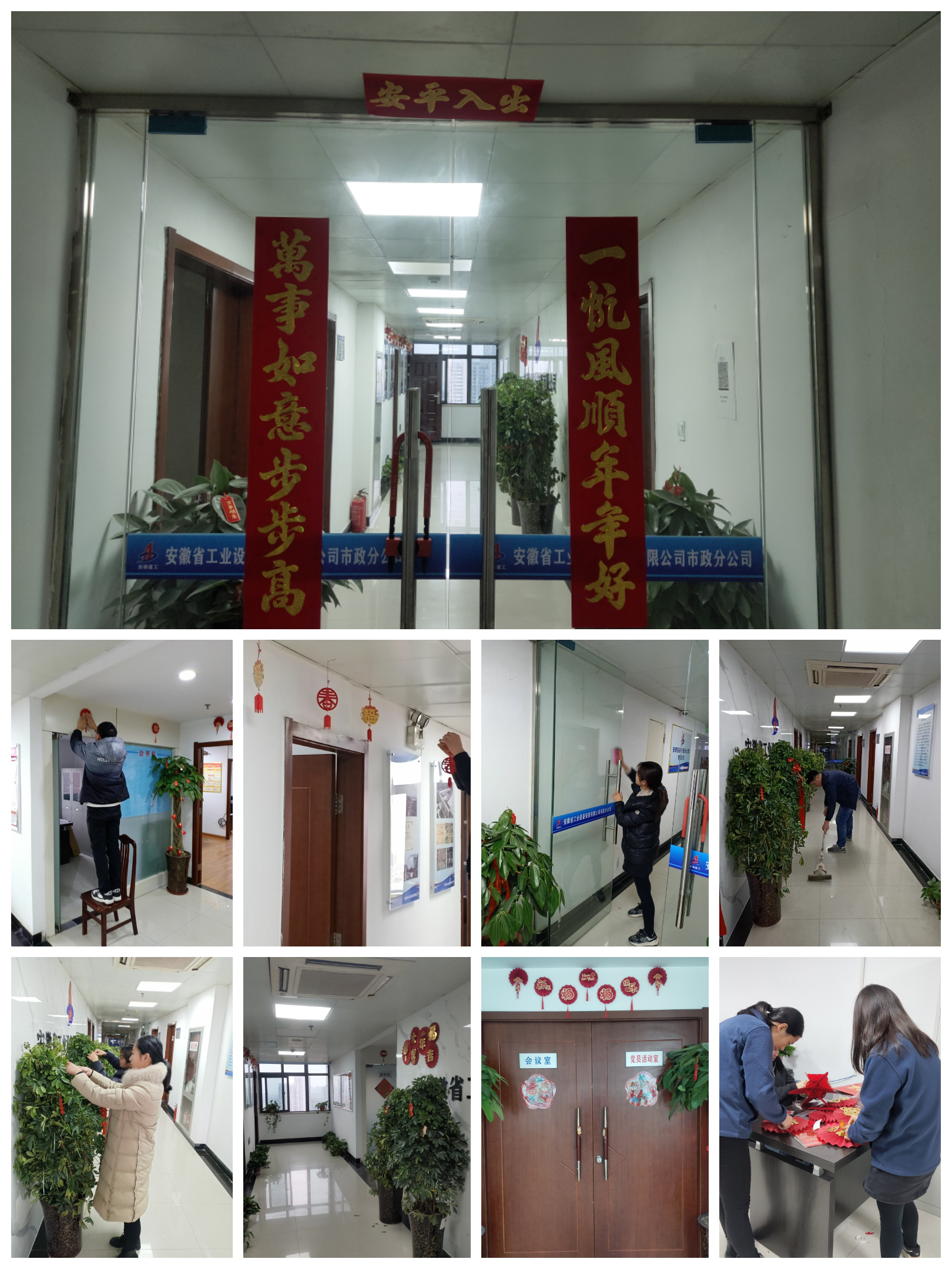 作為市政分公司掛牌成立后的第一個(gè)春節(jié),工會提前準(zhǔn)備好拉花、拉旗等喜慶裝飾物,號召機(jī)關(guān)青年、團(tuán)員自己動手張貼。此次活動得到大家的積極響應(yīng),員工們齊心協(xié)力、分工協(xié)作對辦公區(qū)域進(jìn)行衛(wèi)生清潔與氛圍裝點(diǎn),在機(jī)關(guān)走廊懸掛喜慶裝飾品,讓分公司處處充滿濃濃年味,紅紅火火、喜氣洋洋地迎接新一年的到來。